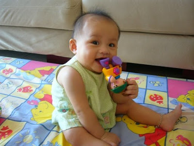 I've been spending the last 2.5 weeks at Mah-Mah's house. I just love staying here because I always get what I want and I'm allowed to do anything that I please. I can easily get away with the naughty things that I've done without being scolded or punished. Mah-mah and Yeh-yeh are so different! With just a loud cry... everything is shoved to me in an instant! ;-)